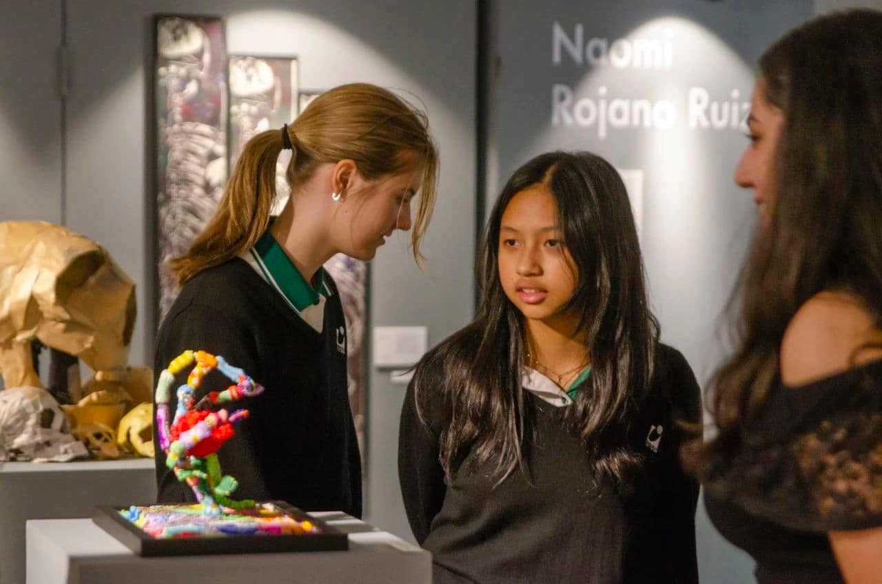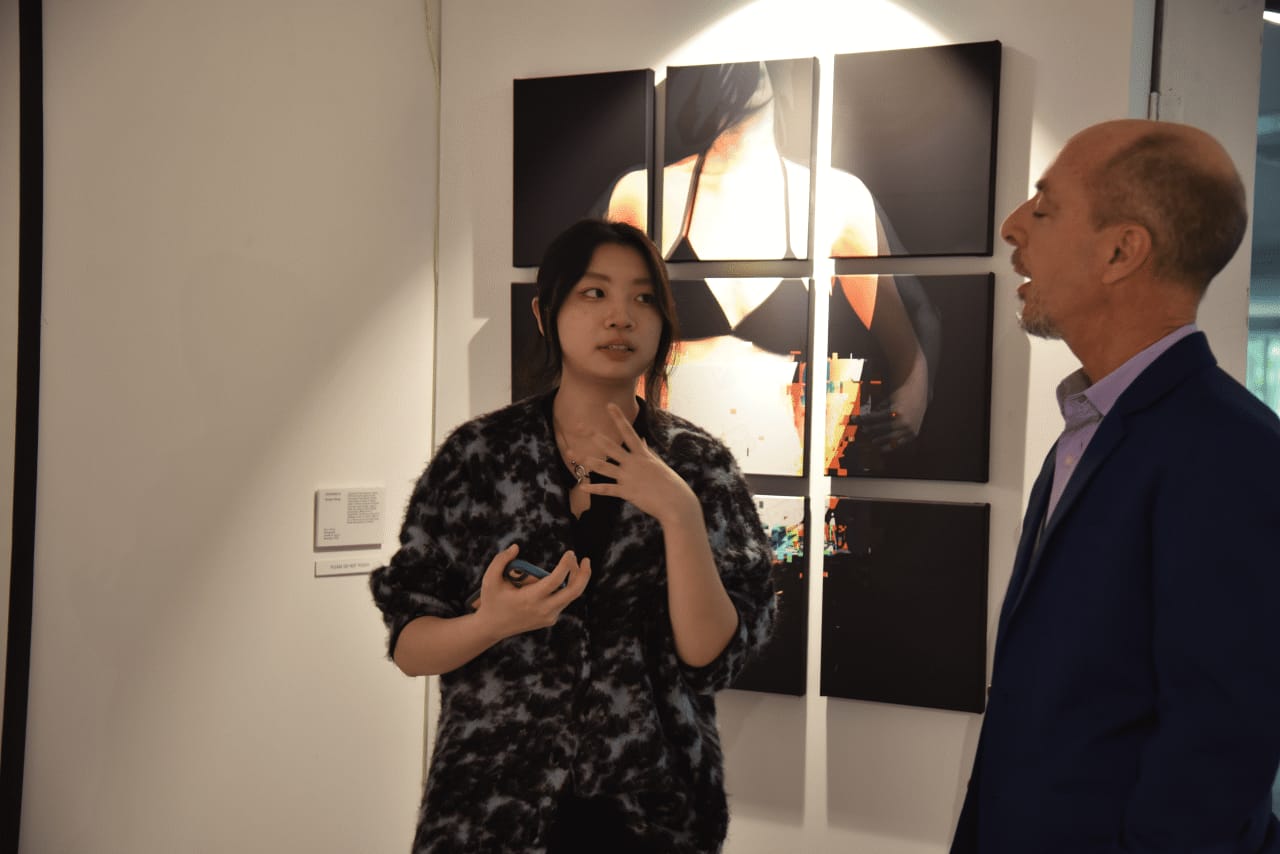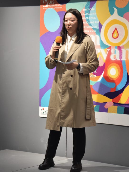 2024年度のビジュアル・アーツHLの生徒は以下の6名である。 エミリー・チェン, ライラ・ペレティエ, メロディ・ペン, ナオミ・ロハノ・ルイス, ジェン・トレダ・リーそして クィーナ・ワン.この5人の若い女性たちにとって、人生を歩むための節目である。これから数週間、仲間とともに国際バカロレアの試験に臨む。その後、彼女たちは世界各地に散らばって、また新たな旅に出る。私は、この展覧会が彼らの記憶に残り、芸術的で創造的なアイデアを彼らの人生と未来へと育みながら成長し続けることを確信している。私はただ、これらのアイデアが、彼らが属するどの地域社会にもポジティブな影響を与えることを願うばかりである。