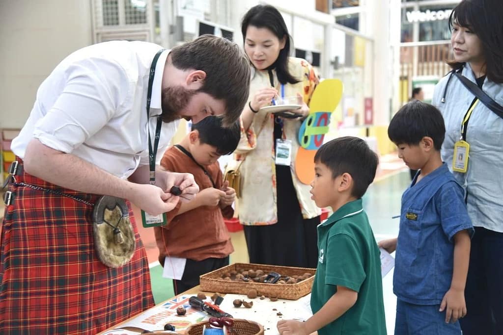 Our Year 2 students, along with supportive teachers and parents, transformed the court into a vibrant cultural expo. Booths representing various countries transported visitors to distant lands. The wolf cubs eagerly collected stamps in their passports, immersing themselves in diverse customs and traditions. Each stop featured traditional games, fascinating artifacts, and hands-on art projects, sparking creativity and engagement. The air was alive with laughter and the excitement of new discoveries, making it a memorable experience for everyone involved.