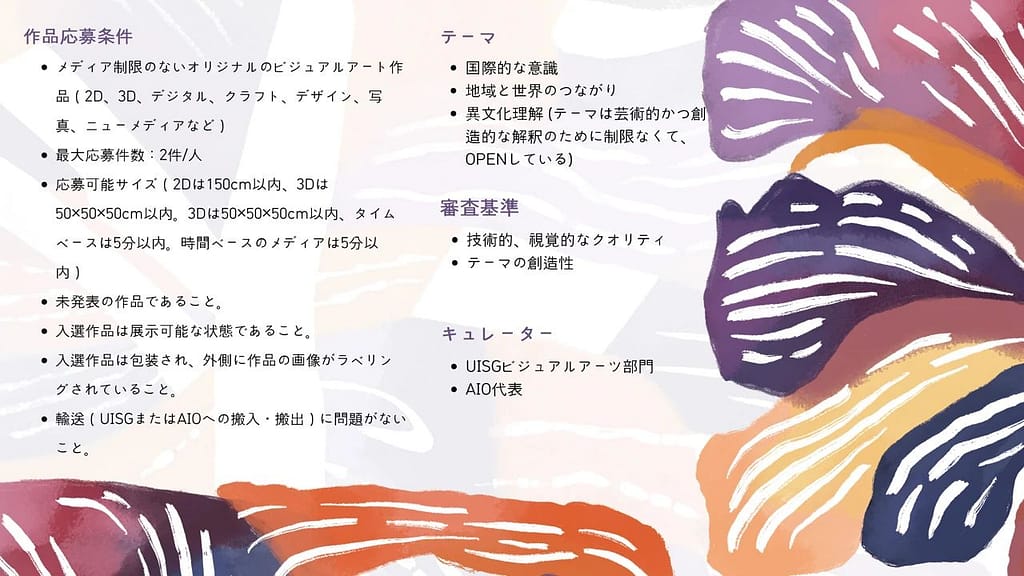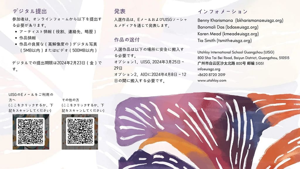 このエキサイティングな機会をお見逃しなく。詳細は以下の応募要項と詳細をお読みください(ポスターのQRコードをスキャンしてください)。私たちは、あなたの芸術的な貢献を見て、私たちの展覧会にあなたがもたらす魔法を目撃するのが待ちきれません。あなたの創造性を輝かせてください!
