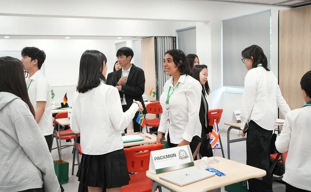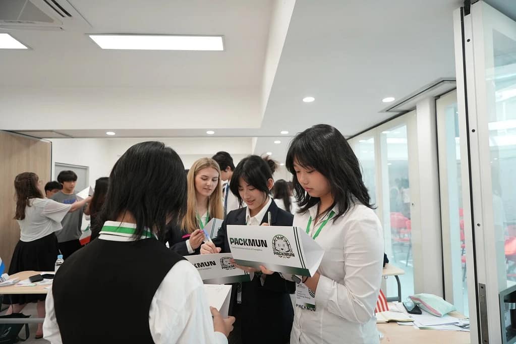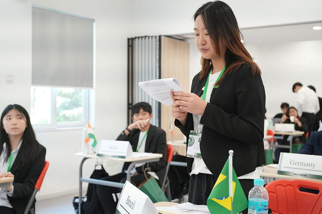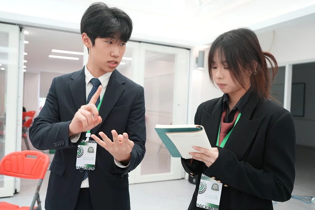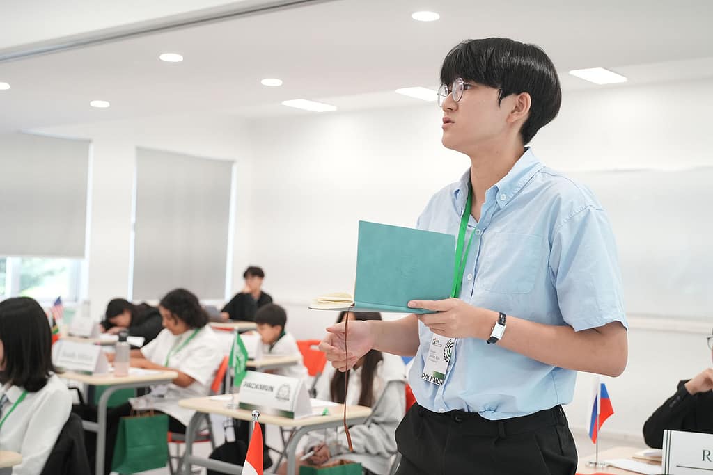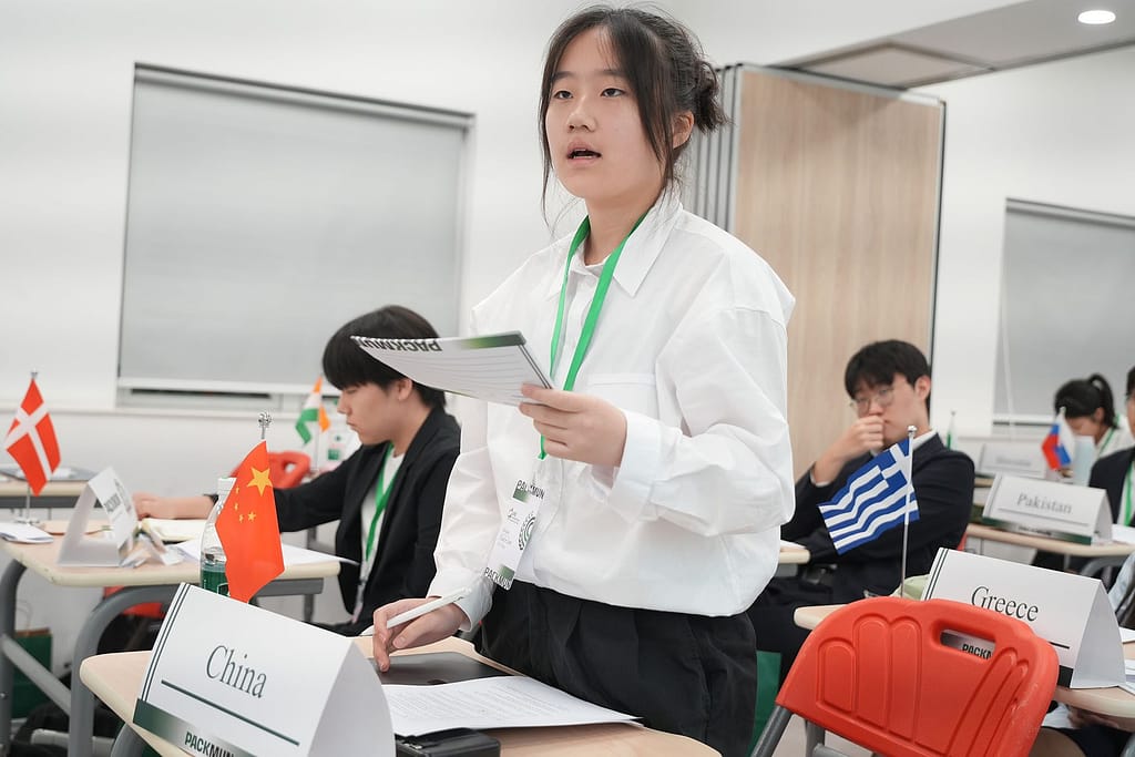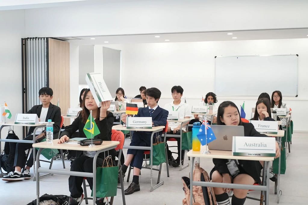 模拟联合国是许多国际学校中广受欢迎的课外活动。学生们扮演某一国家的角色,并须就特定议题捍卫其立场,正如在真正的联合国大会上所做的那样。每位学生(即“代表”)加入一个委员会,就特定主题进行讨论。“主席”则负责主持会议并监督流程,确保符合“议事规则”的要求。代表们需与其他代表协作,通过一份决议案,以尝试解决各自委员会中讨论的问题。上个周末,学生们探讨了众多全球性议题,包括近期美国的关税政策、冲突地区文化遗产的破坏——这些议题影响着许多国家。