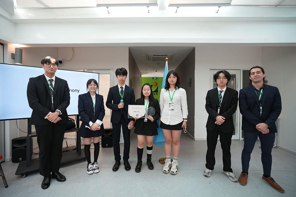 Between formal sessions, students enjoyed breaks where they snacked, chatted, and relaxed – showing their cheerful youthful spirit. Many first-time participants showed great courage and clear personal growth. They dared to speak up even when unsure and left the conference more confident and willing to take risks – a key goal of IB education. More experienced delegates also strengthened their skills, gaining deeper MUN experience that will help them succeed in more competitive conferences later this year.