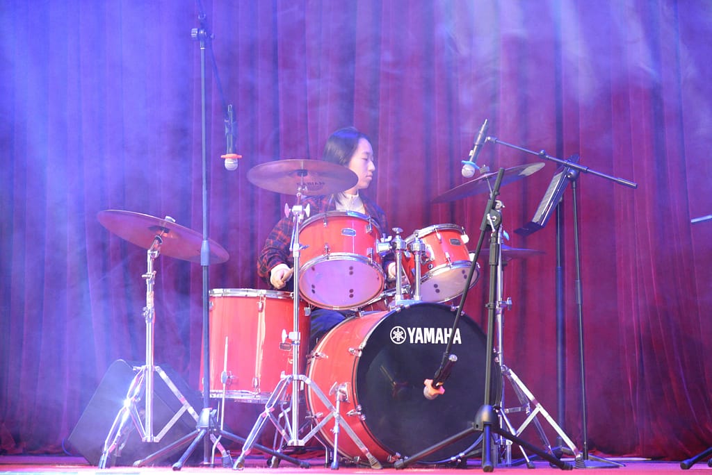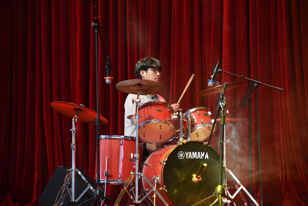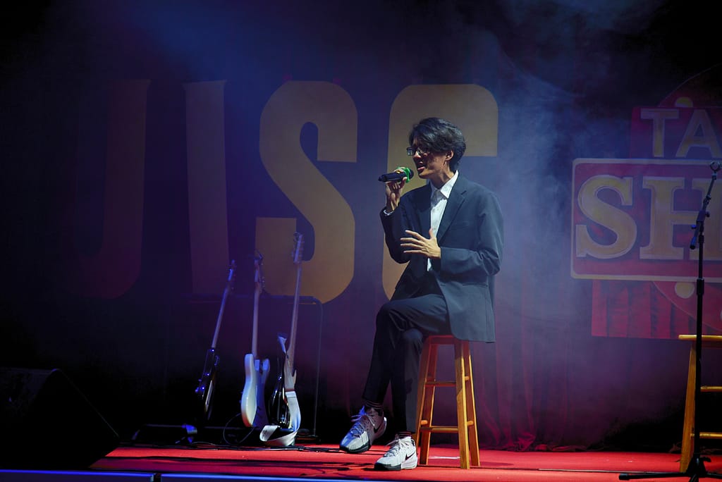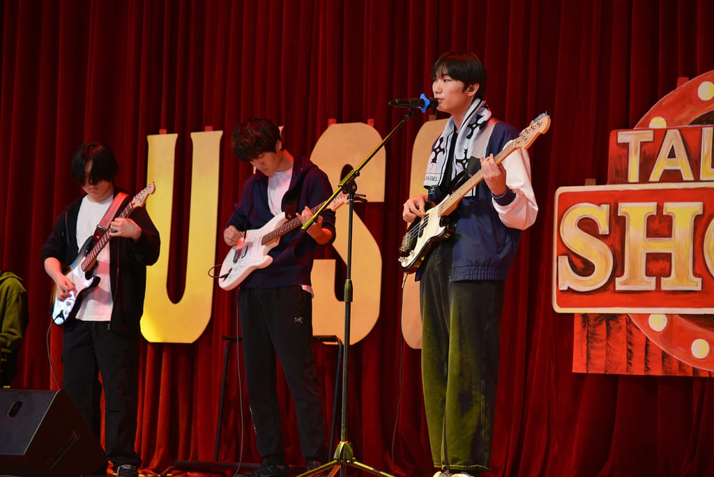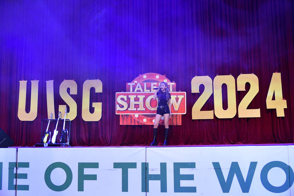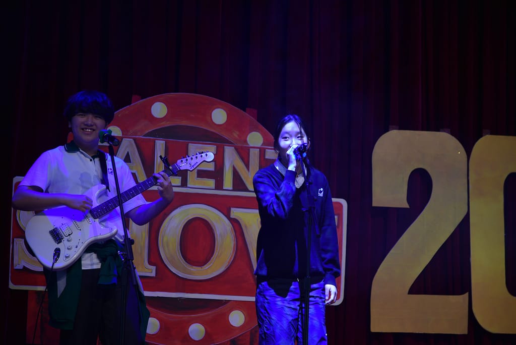 목요일 오후, 중등부 탤런트 쇼가 MFH 무대를 장식하면서 붉은 커튼 위에 'UISG TALENT SHOW 2024' 간판이 다시 올라갔습니다.
