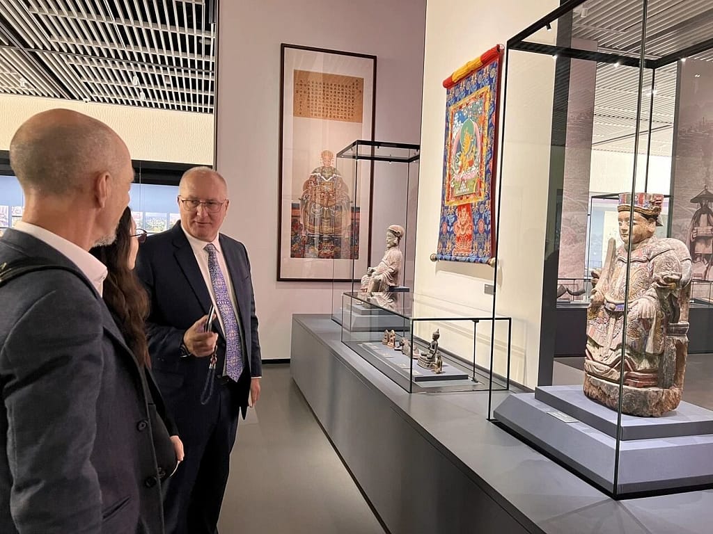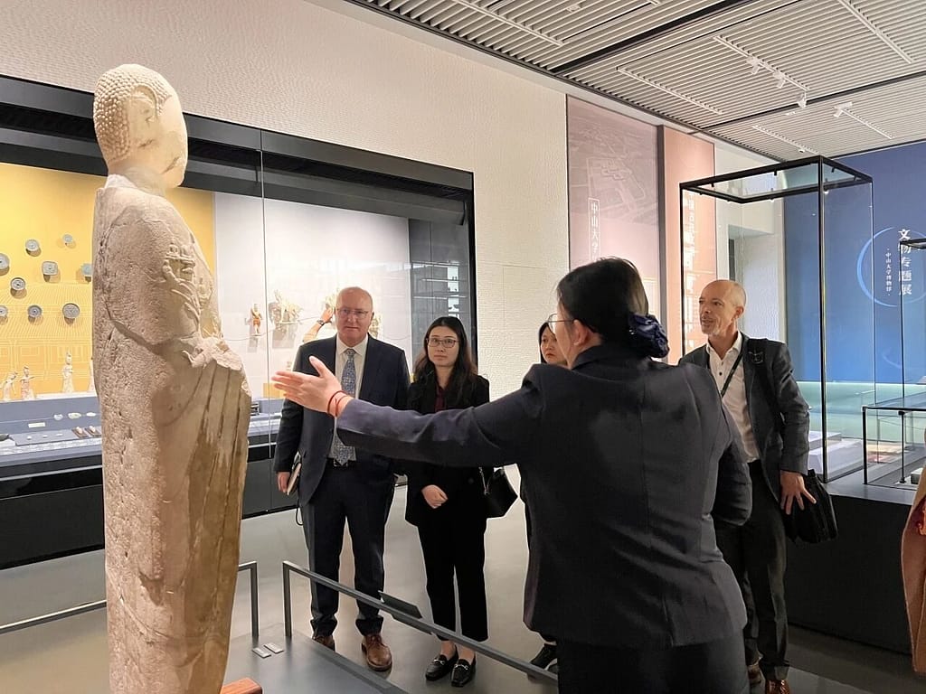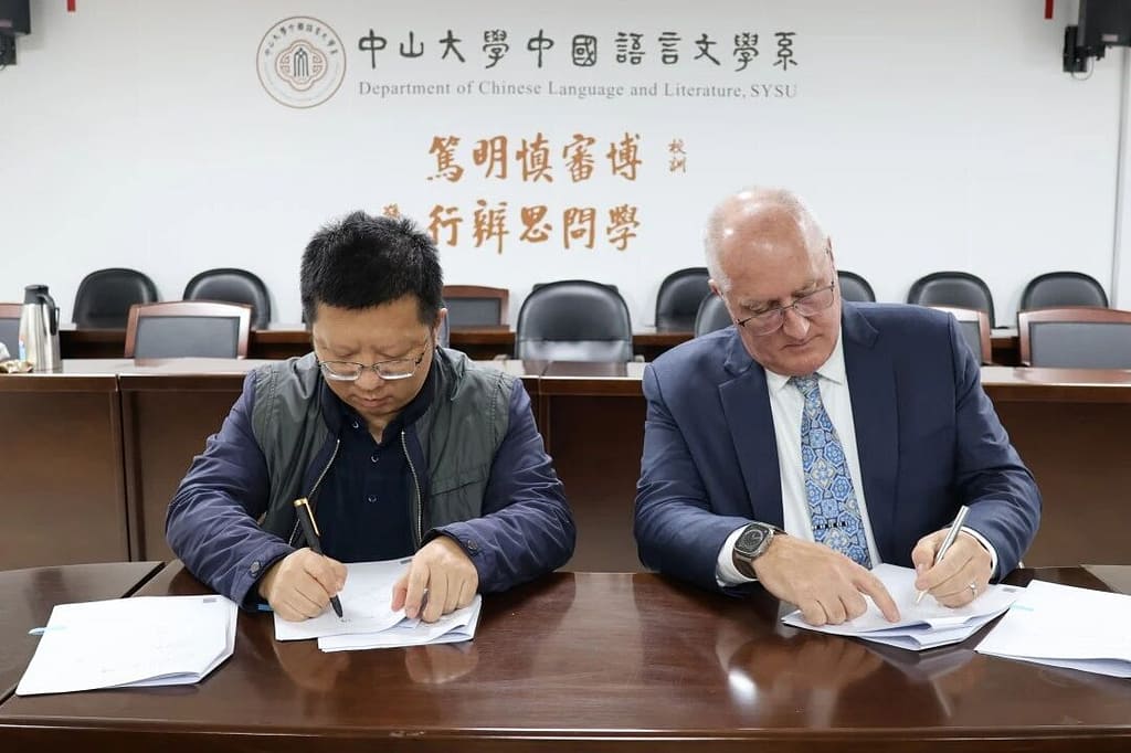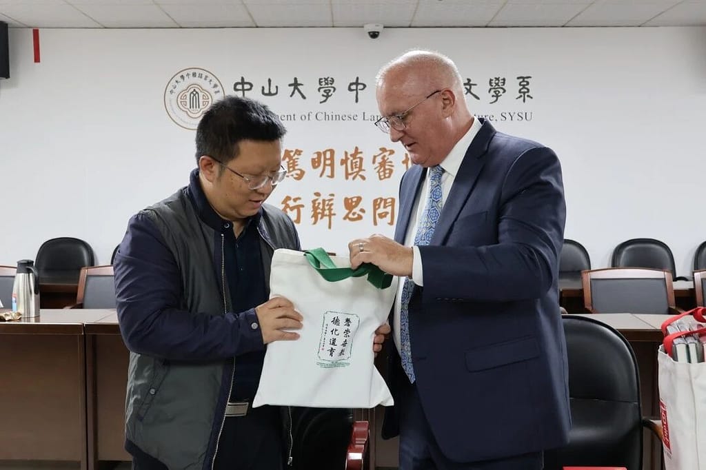 11월 말, 따스한 겨울 햇살 아래 나뭇가지에 꽃망울을 터뜨린 복사꽃이 만발한 가운데 쑨원대학교 중어중문학과 회의실에서 문화유산과 교육 협력에 관한 대담이 열렸습니다. 고요한 겨울 분위기 속에서도 이 자리는 깊은 의미를 담고 있었습니다. 왕정 당서기, 시에진화 부서기, 덩슈란 부교수, 쑨원대학교 국제중국어센터 부소장 등 두 기관의 대표들이 유타홀리 국제학교 광저우 교장 댄 멀렌 박사와 함께 중등학교 교장 마틴 그리스트, 중국어학과장 신디 리, 인사 관리자 세레나 종, 인사 전문가 켈리 시투를 만났습니다. 이들은 함께 오래된 관계를 새롭게 하고 새로운 장을 구상했습니다.