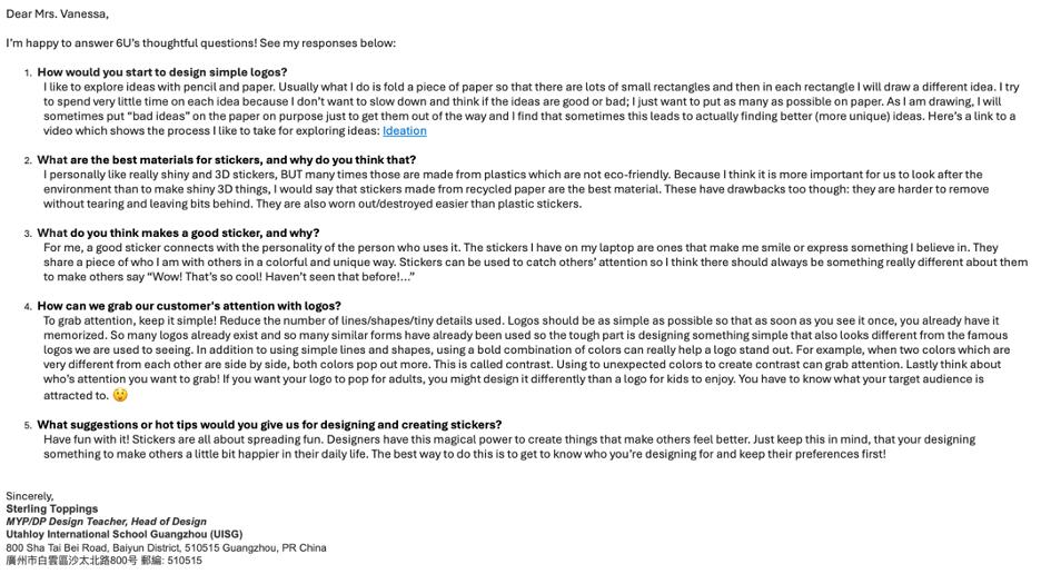 Y6 학생들은 중등 학생으로서 첫 번째 디자인 단원을 완료합니다!
