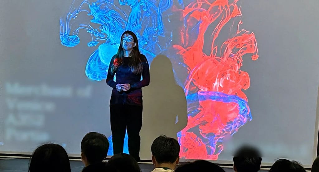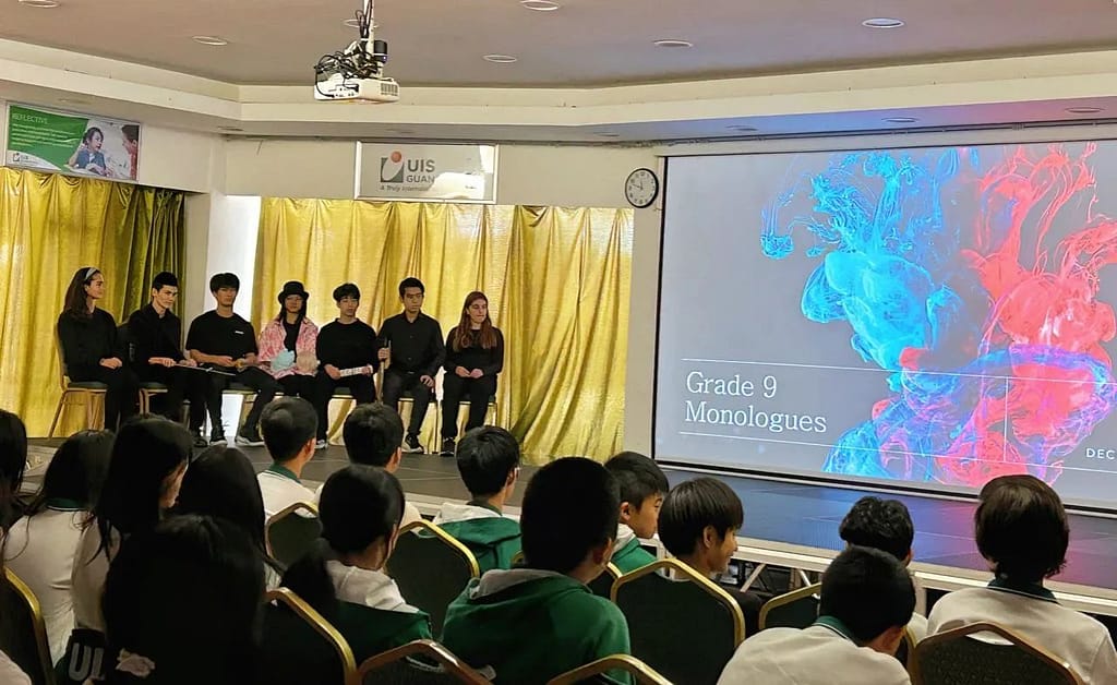 9학년 학생들은 셰익스피어 원작 희곡 텍스트에서 독백을 선택하고, 연구하고, 배우고, 연습하고, 공연해야 했습니다. 학생들은 배우로서의 역할에 대한 해석, 형태, 선택, 구성, 통찰력을 보여줄 뿐만 아니라 감독과 함께 독백에 대해 작업해야 했습니다. 메모를 작성하고 대본에 주석을 달면 아이디어와 통찰력의 해석, 형성, 선택 과정을 확인할 수 있습니다. (예술 과정 일지). 재능(자신감과 통제력)을 가지고 연기하며 자신의 독백이 나오는 연극 스타일에 대한 인식, 이해, 통제력을 잘 보여줍니다. 청중과 지속적으로 소통하고 있으며, 따라서 청중의 참여를 유지하기 위해 강한 목소리, 몸, 자세를 사용합니다.
