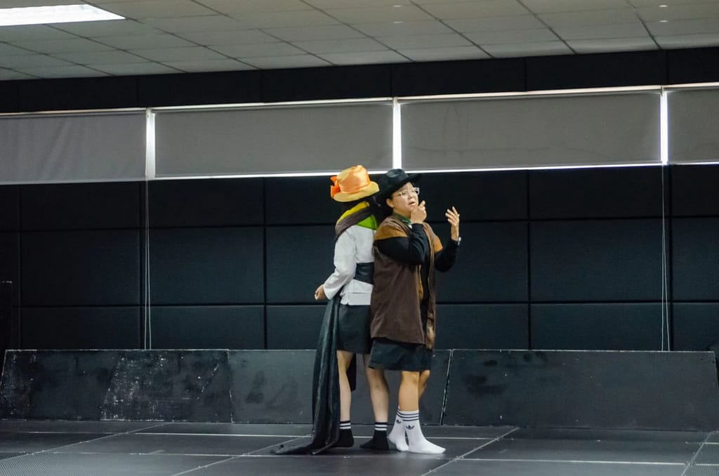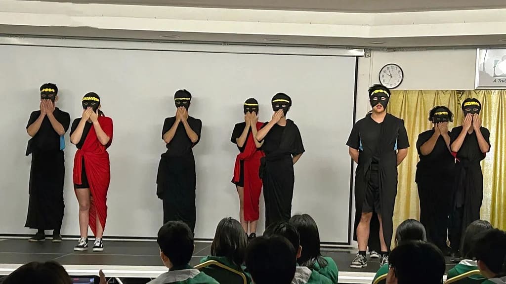 그런 다음 학생들은 오디션 과정을 거치고, 대본에 주석을 달고, 안무/블록을 배우고, CREW 임무(가면, 의상, 홍보 포스터, 소개 PPT, 사운드트랙 큐레이팅)를 디자인해야 했습니다. 또한 예술가의 성찰 글쓰기(예술 과정 일지), 아이디어의 선택, 통찰력을 해석하고, 형성하고, 선택하고, 구조화하고, 자신의 역할에 대한 통찰력을 보여줍니다. 마지막으로 감각(자신감과 통제력)을 발휘하고 스타일을 잘 인식, 이해, 통제하는 모습을 보여 줍니다.