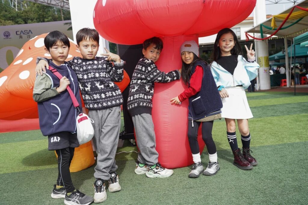 这一天,UISG化身为一片奇幻森林。发光的星辰悬于头顶,彩带在阳光下翩跹起舞,巨大的妙想蘑菇破土而出,点缀着园地,打造出既充满想象力又热情洋溢的空间。以森林为主题的照片亭迅速成为最受欢迎的打卡点,朋友家人在森林系的布景前合影,定格欢乐瞬间,留存美好记忆——感谢中学部学生会与UPTA的携手共创。整场节日活动完美呼应了“你我共熠(Shine Bright Together)”的主题,学生、家庭、教职员工及社区好友齐聚一堂,共同庆祝彼此的联结、创意与分享的喜悦。