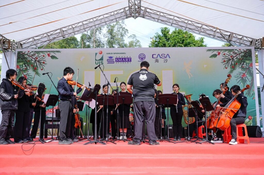 灯光节在中学管弦乐团优美的演奏中正式拉开帷幕,为午后奠定了深情而昂扬的基调。随后,小学部全体学生真挚献唱《Love Shine a Light》,瞬间凝聚了节日的精神内涵。全天持续的表演精彩纷呈,充分展示了UIS两校区学生卓越的才华:活力四射的摇滚乐队、优雅动人的芭蕾舞者,以及各类合奏与独唱表演,赢得了观众热烈的掌声。