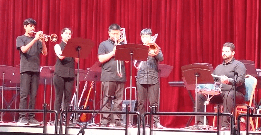 The Jazz Band introduced the instrumental section of the Summer Concert. Directed by Mr Josh Natal, who also played trumpet, the five-piece band swung through two tunes: ‘C-Jam Blues’ and ‘Mr. P.C.’. The audience could not help but tap their feet and start to feel the groove!