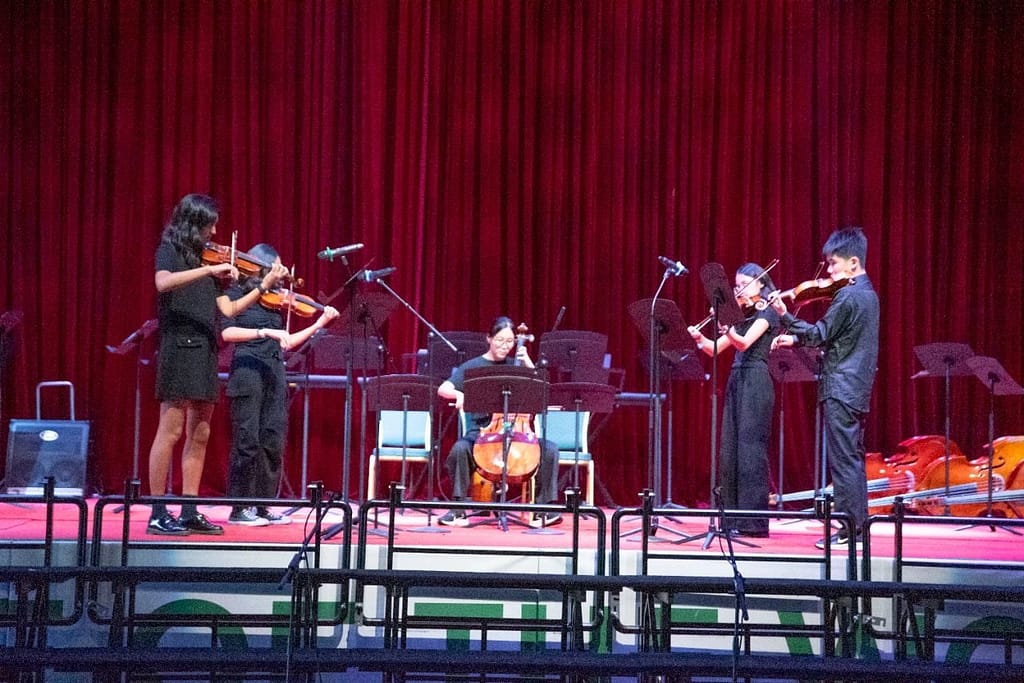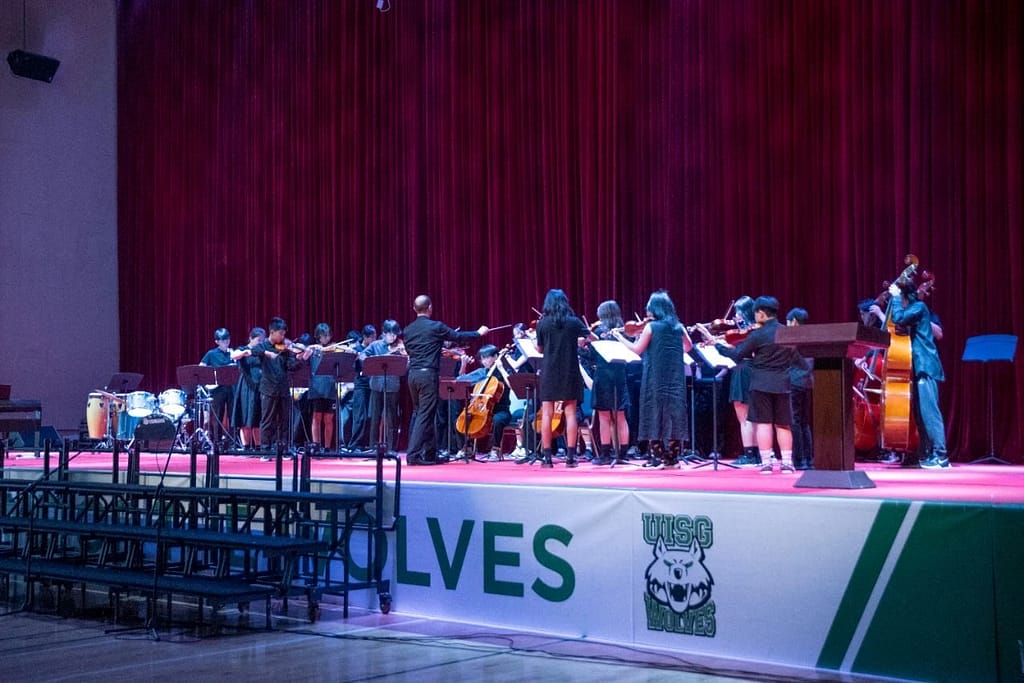 The whole school Performing Arts department incorporates Music and Theatre – Music from Early Years, Primary PYP, Secondary MYP and Secondary DP classroom courses, along with Theatre classroom courses in Secondary MYP and Secondary DP. Although IB classroom courses are the main focus, extra-curricular opportunities are often an expected part of a Performing Arts programme. UISG is fortunate to have practitioners who are able to support and develop young artists through both curricular (classroom) and extra-curricular Music groups, despite the challenges of gathering students for weekly rehearsals.The Instrument Tuition Programme (ITP) is an independent, parallel extra-curricular programme, through which parents can sign up for instrument lessons with UISG-approved Instrument Teachers. Our violin and flute teachers also offer lunchtime Primary Music groups.