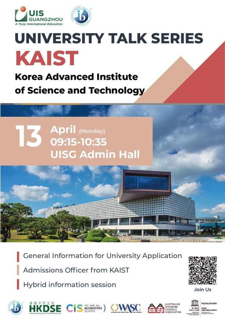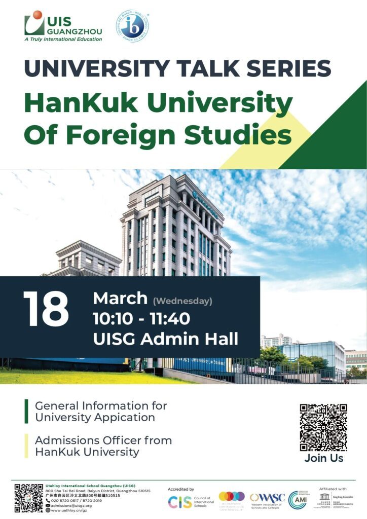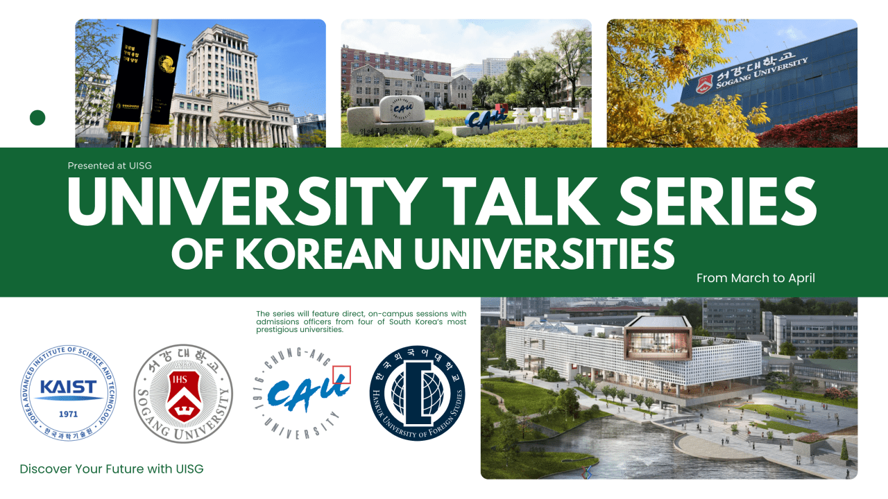 We are thrilled to announce that Utahloy International School Guangzhou (UISG) will host an exclusive University Talk Series of Korean universities this spring. The series will feature direct, on-campus sessions with admissions officers from four of South Korea’s most prestigious universities.