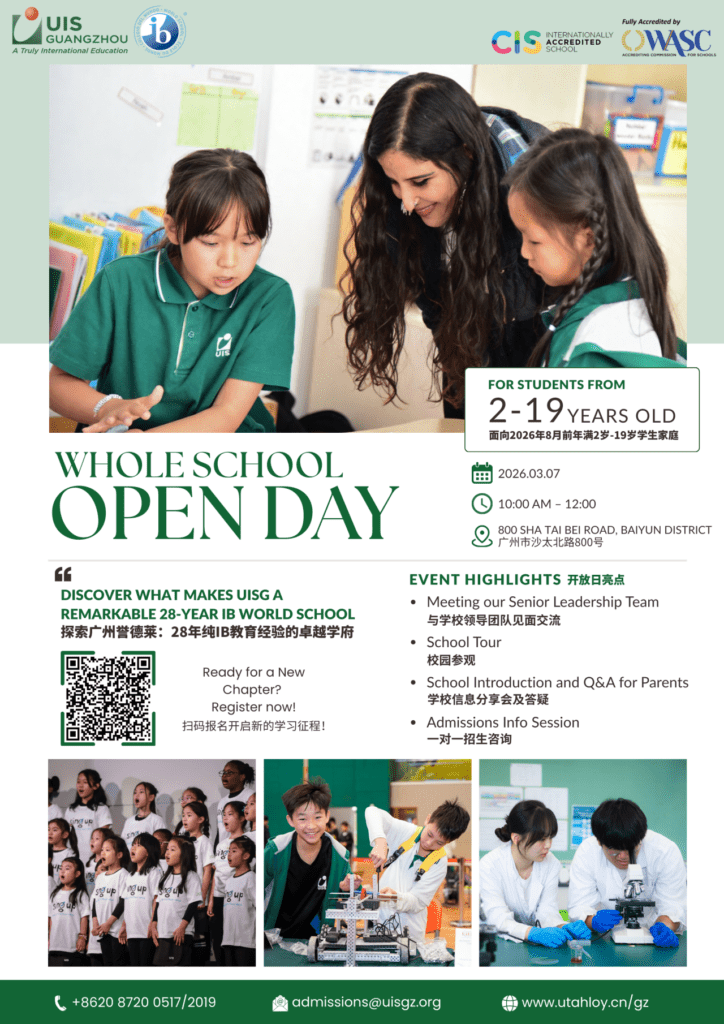 Location: Utahloy International School Guangzhou, 800 Sha Tai Bei Road, Baiyun District, Guangzhou.