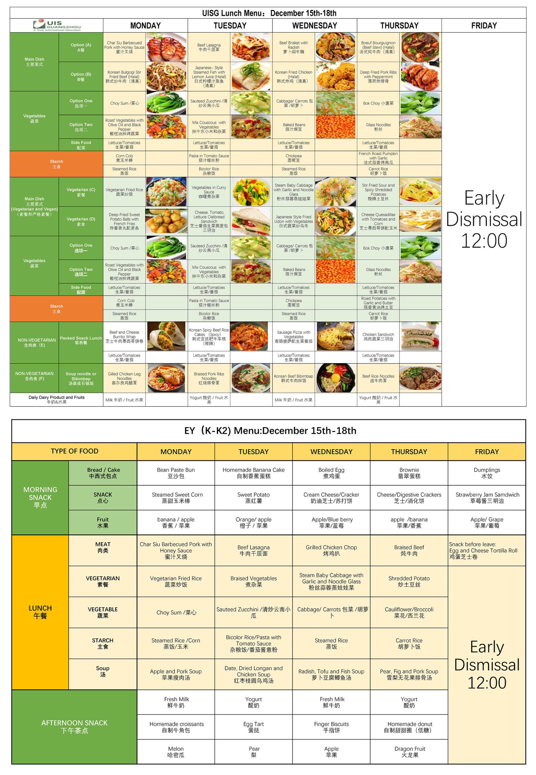 Lunch Menu Information