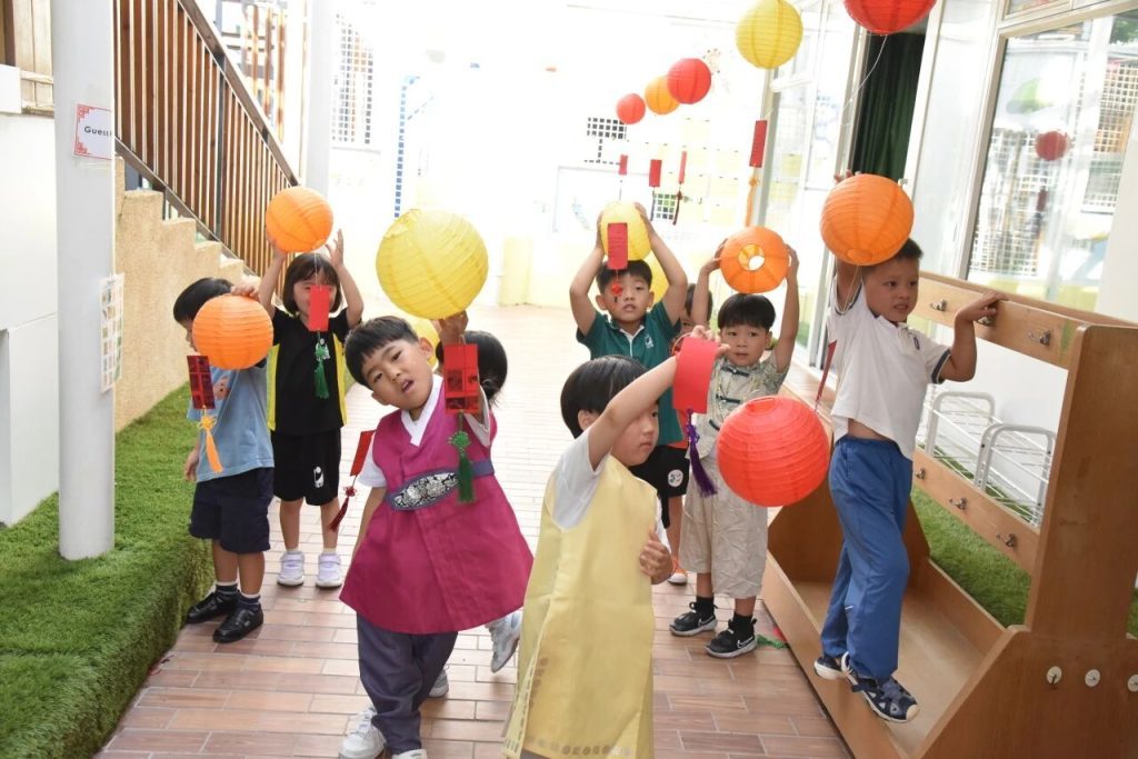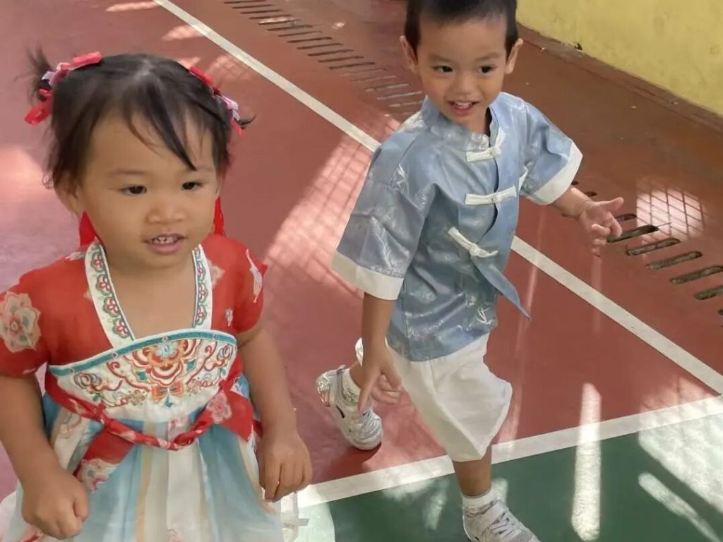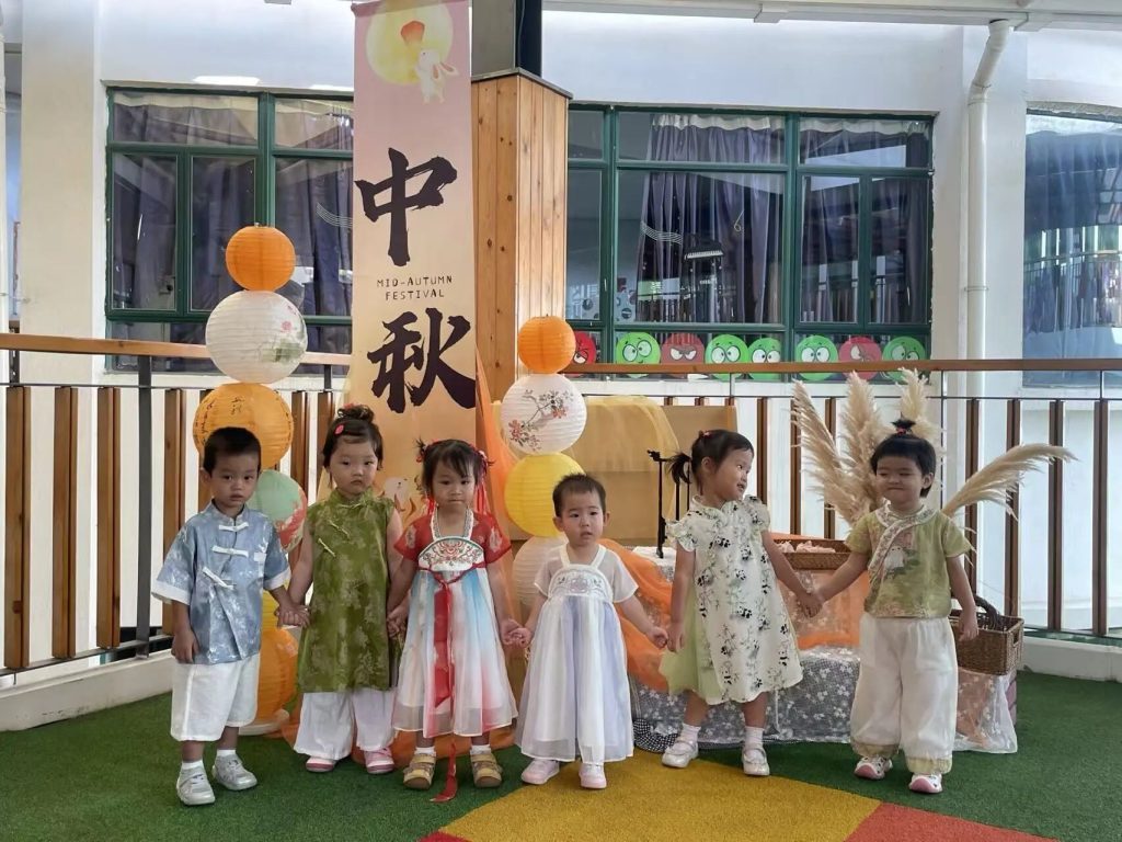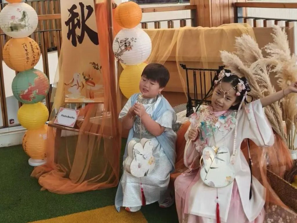 上周五,幼儿园和早托中心共同庆祝了这个永恒的传统节日—中秋节。女孩们穿着飘逸的旗袍和汉服,男孩们穿着可爱帅气的唐装和汉服,满脸灿烂地走进校园,大家互相欣赏和赞叹。“你看起来像个王子!”“哇,你的裙子真漂亮!”学校里充满了欢乐的气氛。
