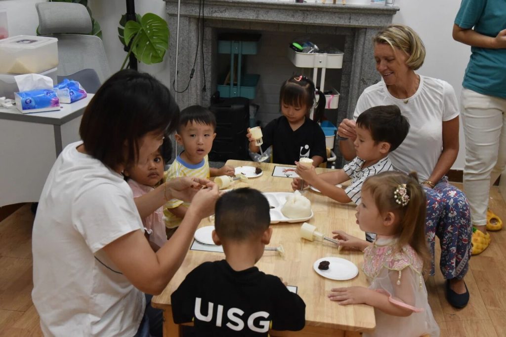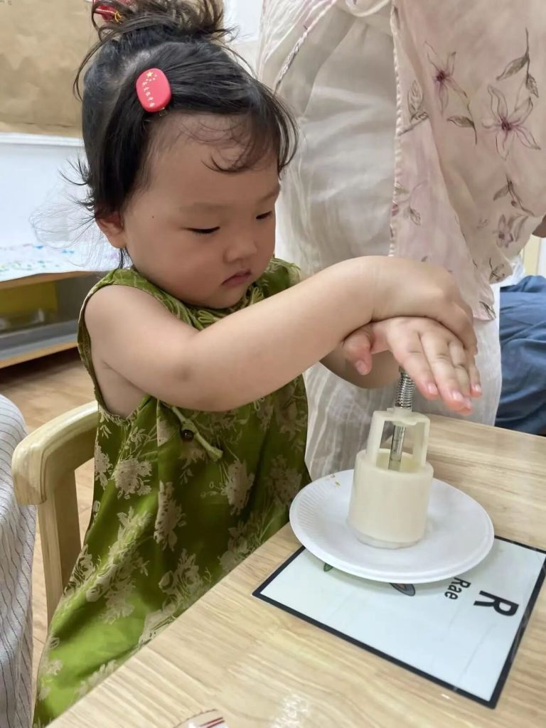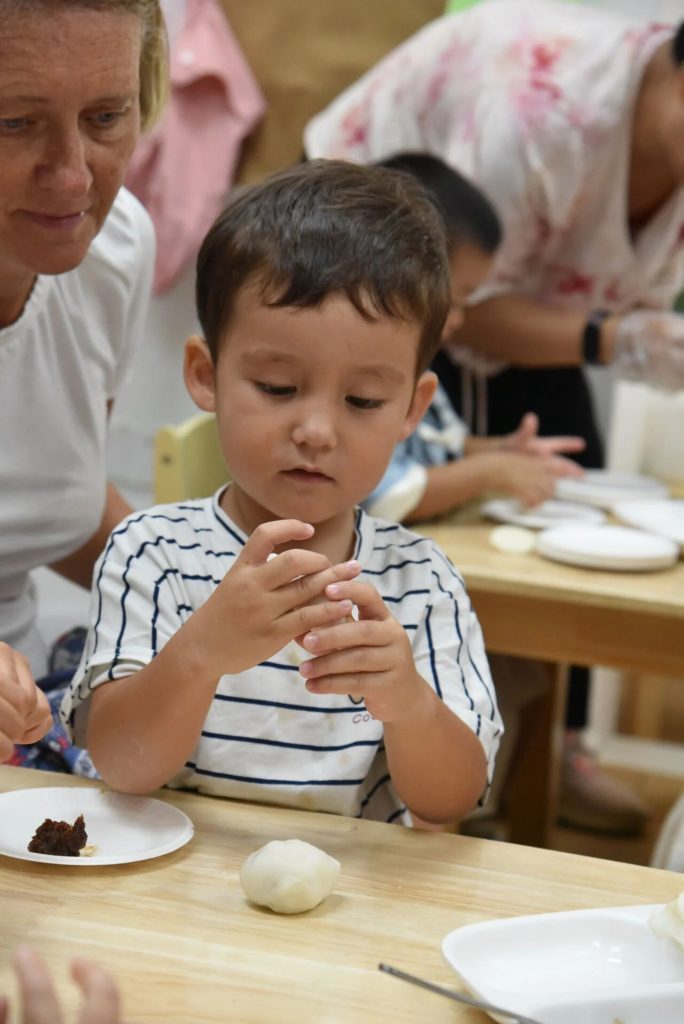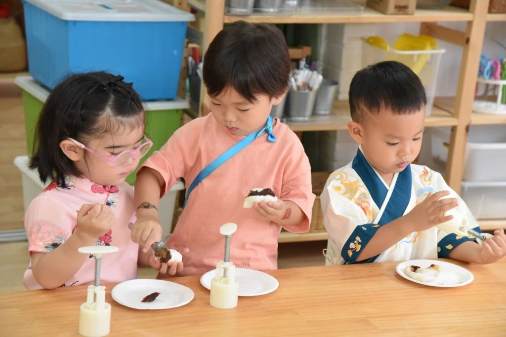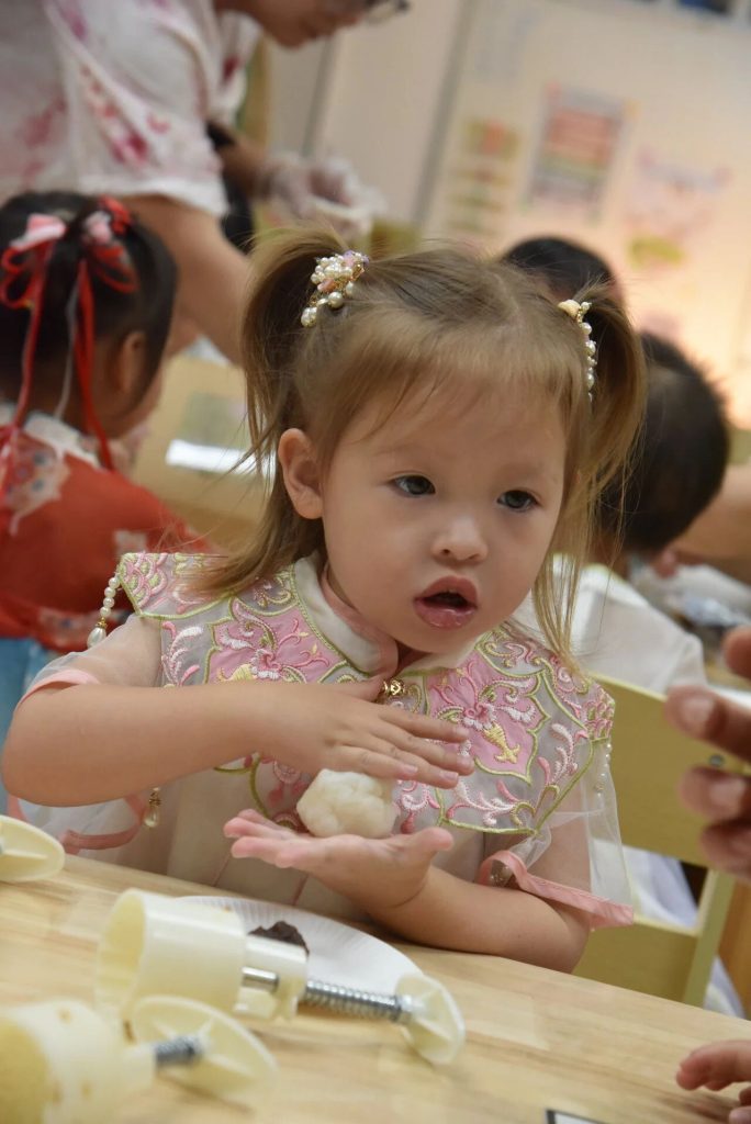 Children gathered around a table, busy making mooncakes, a sweet aroma filled the classroom. Their nimble hands wrapped the filling into the dough and pressed it into the mold. “So delicious!” one child proudly exclaimed as he savored a mooncake he had made himself.