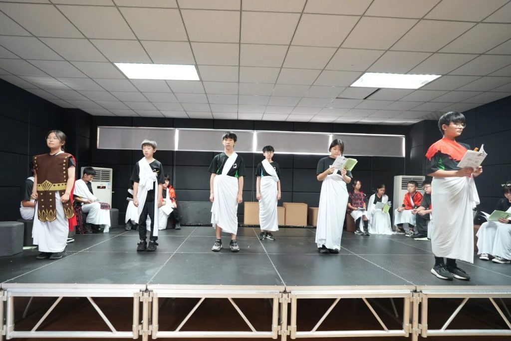 七年级戏剧课程第一学段的学生带来了莎士比亚《尤利乌斯-凯撒》的读者剧场改编版。七年级的学生们此前已通过即兴创作和默剧(身体意识)探索了提升创作过程的不同方法,现在则学习在戏剧剧本中扮演喜剧角色的结构与技巧。