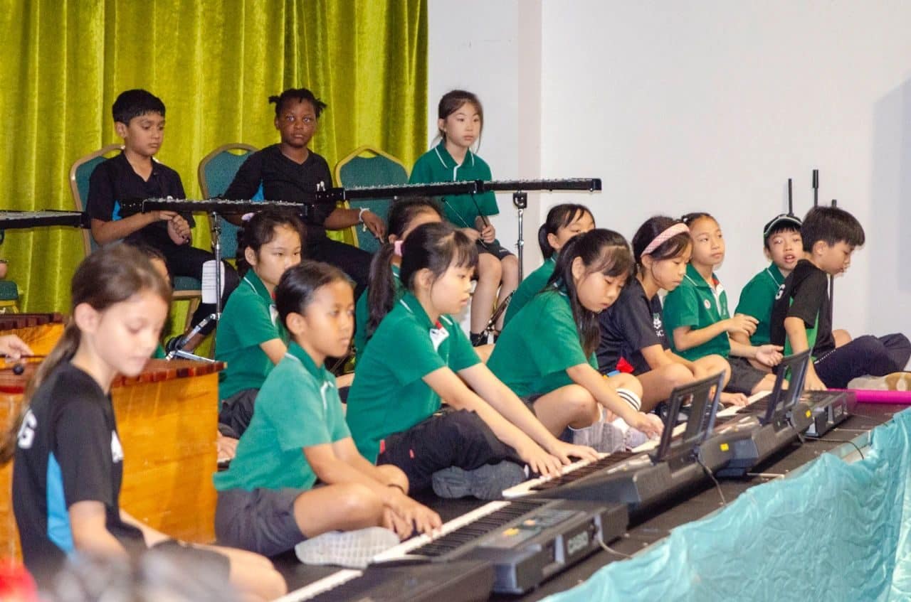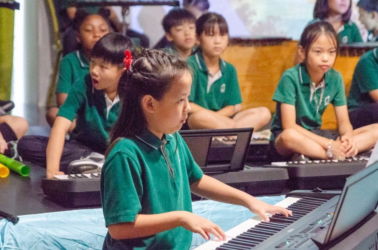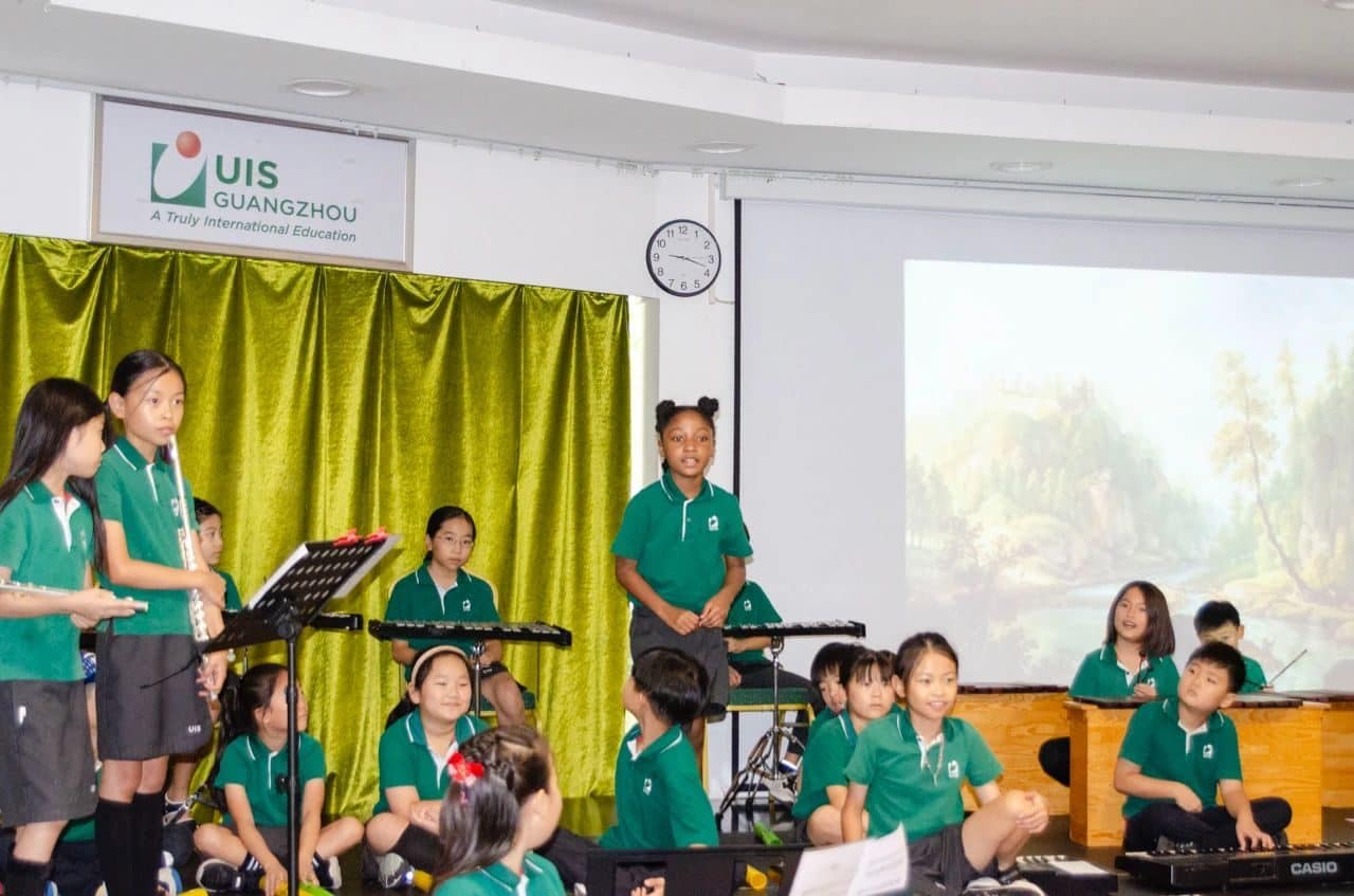 Engaging in various activities, the students took on different roles such as a rafter, a gold prospector in the river, and even embodying the essence of a flowing stream. By associating these roles with distinct sounds, the students not only enjoyed the process but also grasped the structural form of the piece “Moldau.” This musical composition vividly portrays a journey along the river, encountering river fairies, a countryside wedding, and hunters in the forest, culminating in the river reaching the capital of Prague and flowing past the majestic Prague Castle.Moreover, the students participated in a musical domino activity, connecting different segments of the piece and accurately repeating the main theme in the correct sequence. The culmination of their efforts was a grand performance by all third-grade students, which took place at the Admin Hall at UISG on Friday, 31st May.Congratulations to all the talented third-grade students for their outstanding achievement! Well done !