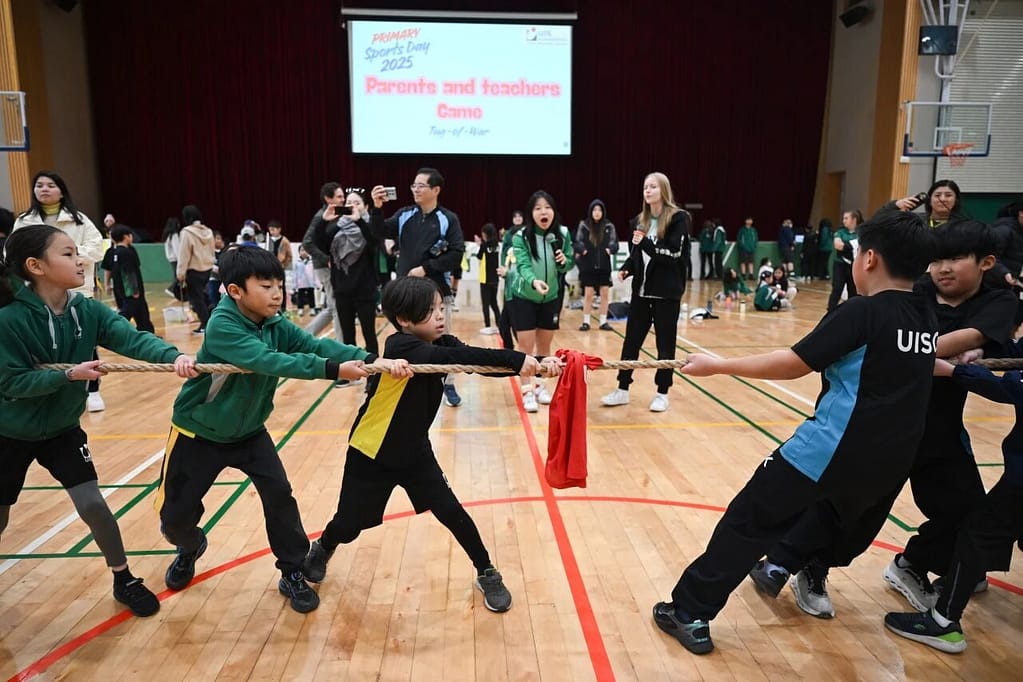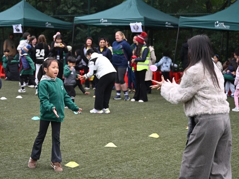 亲子趣味赛环节中,家长、老师和学生默契协作,用温暖联结抵御凉意。水球传递与拔河较量生动诠释了uisg社群精诚合作的精神,每个参与者都在微寒天气中绽放耀眼光彩。