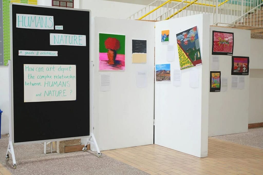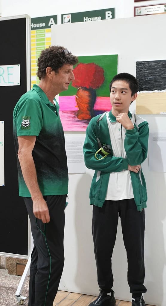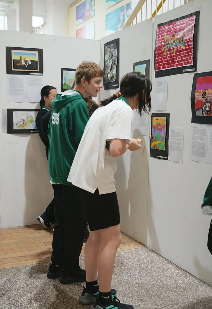 午休时间,这里充满了对话:学生们在作品前驻足,教师们询问创作选择,甚至校长也与年轻的艺术家们交流作品背后的故事。每件作品不仅是视觉表达,也是对话和批判性思维的催化剂,体现了国际文凭组织对互动、探究和跨学科联系的重视。在这里,艺术不仅仅是一种表现形式,而是一种理解我们世界的方式。.
