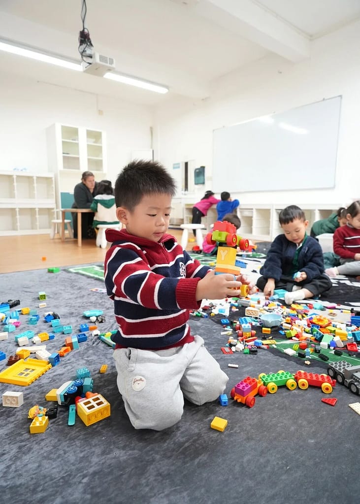 当一组孩子协作设计编程序列时,迷你创想工坊里的同伴们正沉浸在设计过程中:搭建原创作品,并锻炼着至关重要的协作能力与共同解说艺术。