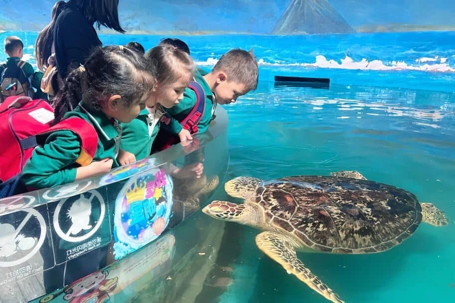 带着对责任与万物互联的思考,孩子们观察月光般静谧发光的水母,注视憨态可掬的企鹅巡游,领悟每个物种独一无二的生命角色。 他们讨论鱼群闪烁粼光的生态意义,邂逅温柔笨拙的海龟,与旋转共舞的海豹欢笑共鸣--亲眼见证了万千生命如何共享同一片海洋。