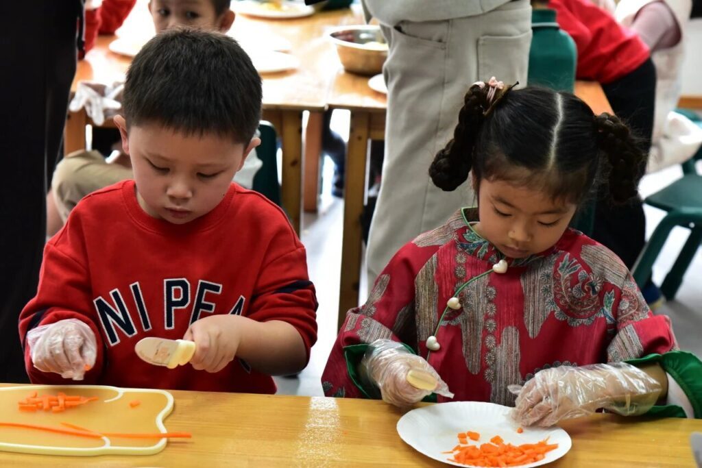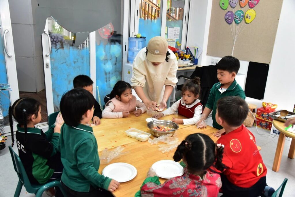 本周,另一组妈妈则带着孩子们一起包饺子,这正契合即将到来的农历新年氛围。两位忙碌的妈妈抽出宝贵时间,带领孩子们体验包饺子的乐趣。孩子们忙着切菜、拌馅、捏饺子,个个乐在其中。