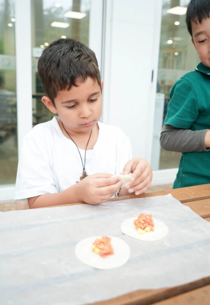 This week, another group of moms guided the children in making dumplings, an activity that is also related to the upcoming Lunar New Year. 2 busy moms made time to lead the fun activity of making Chinese dumplings “Jiǎo Zi.” The children got busy slicing, mixing, and shaping the dumplings.