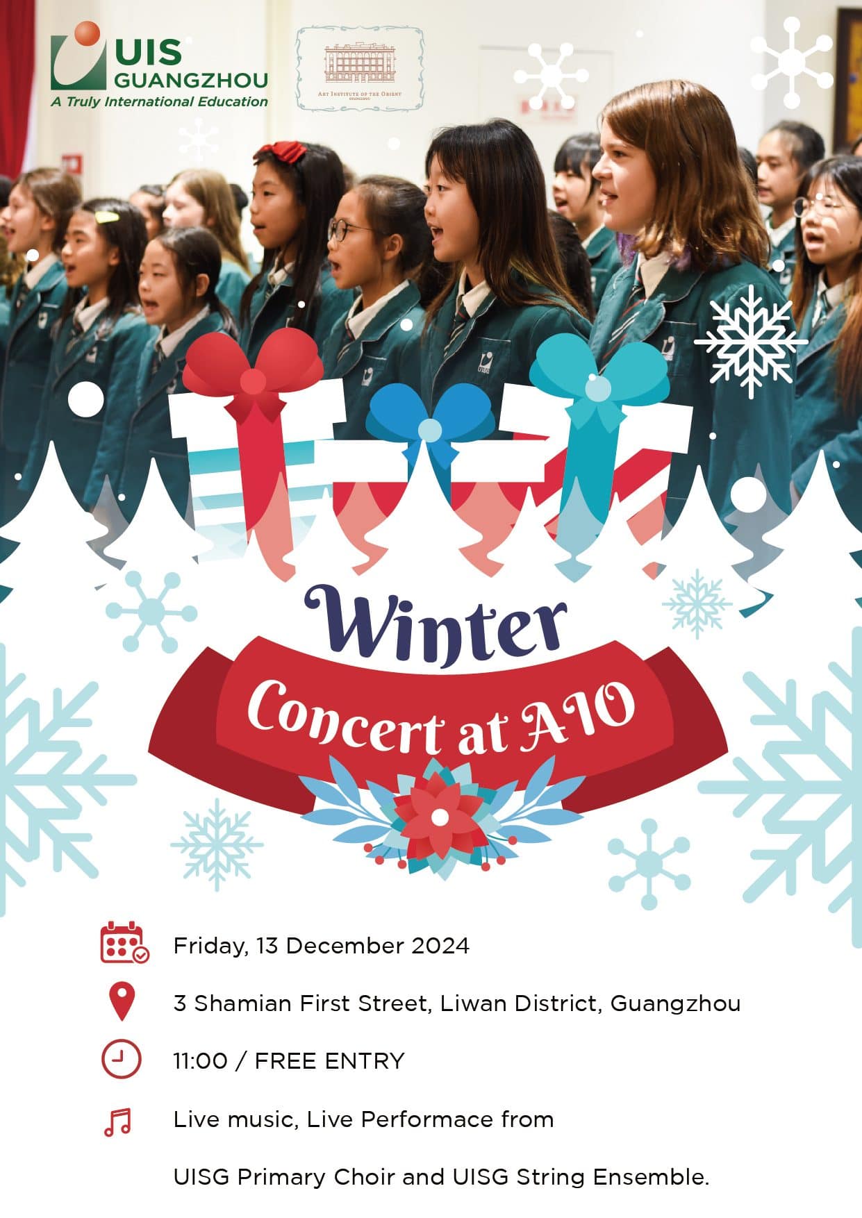 广州犹他国际学校(UISG)诚邀您参加我们的冬季音乐会!2024年12月13日星期五,让我们一起度过一个充满音乐和欢乐的特别早晨。