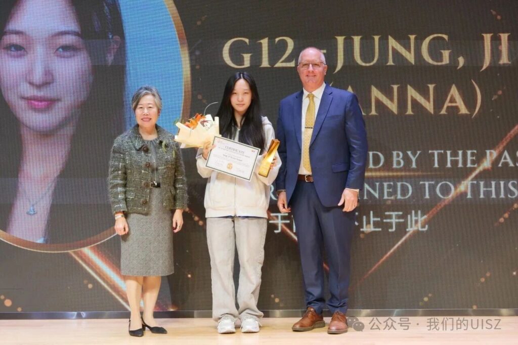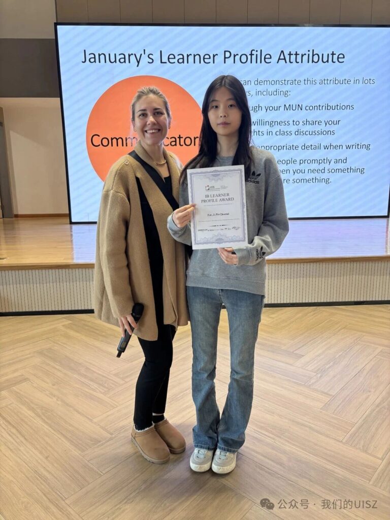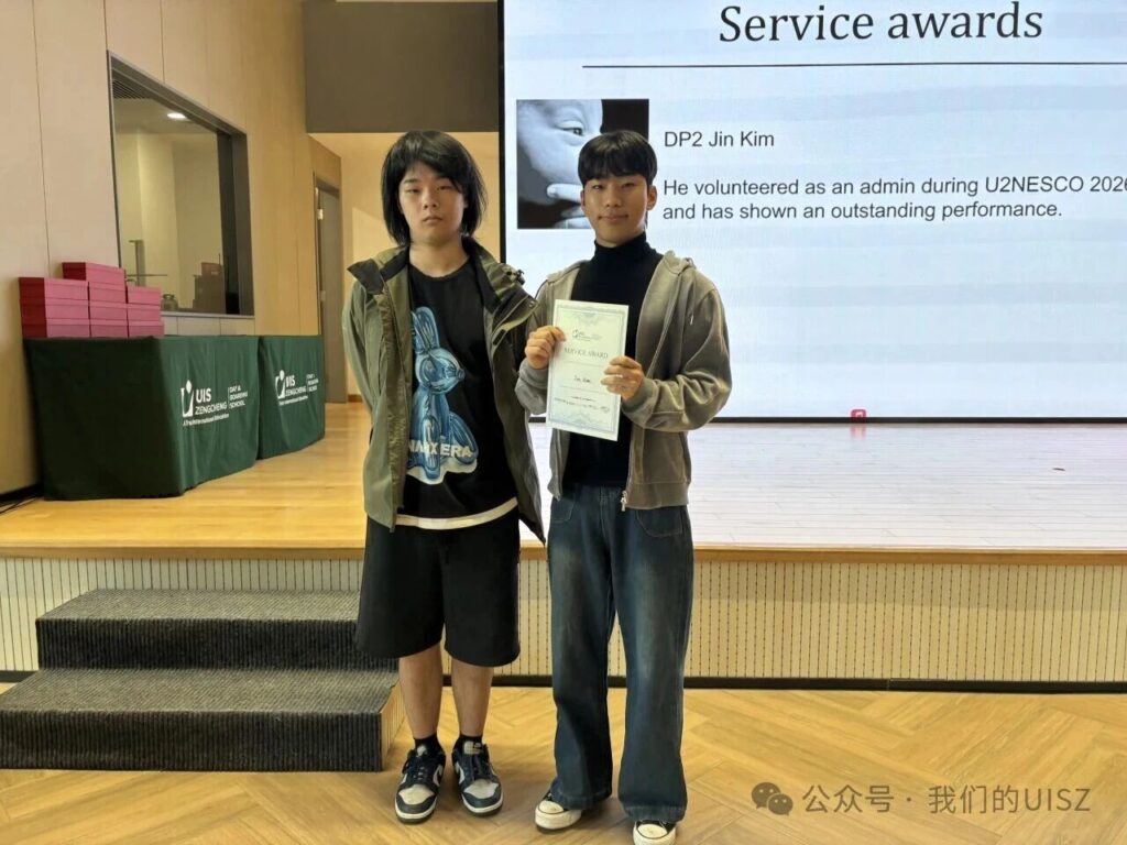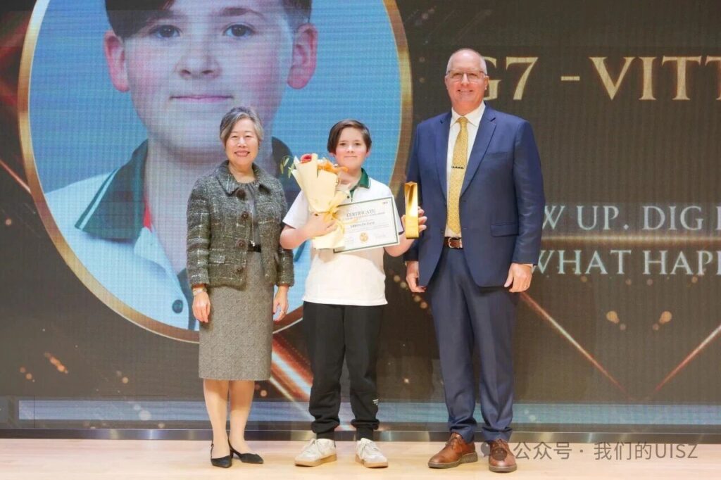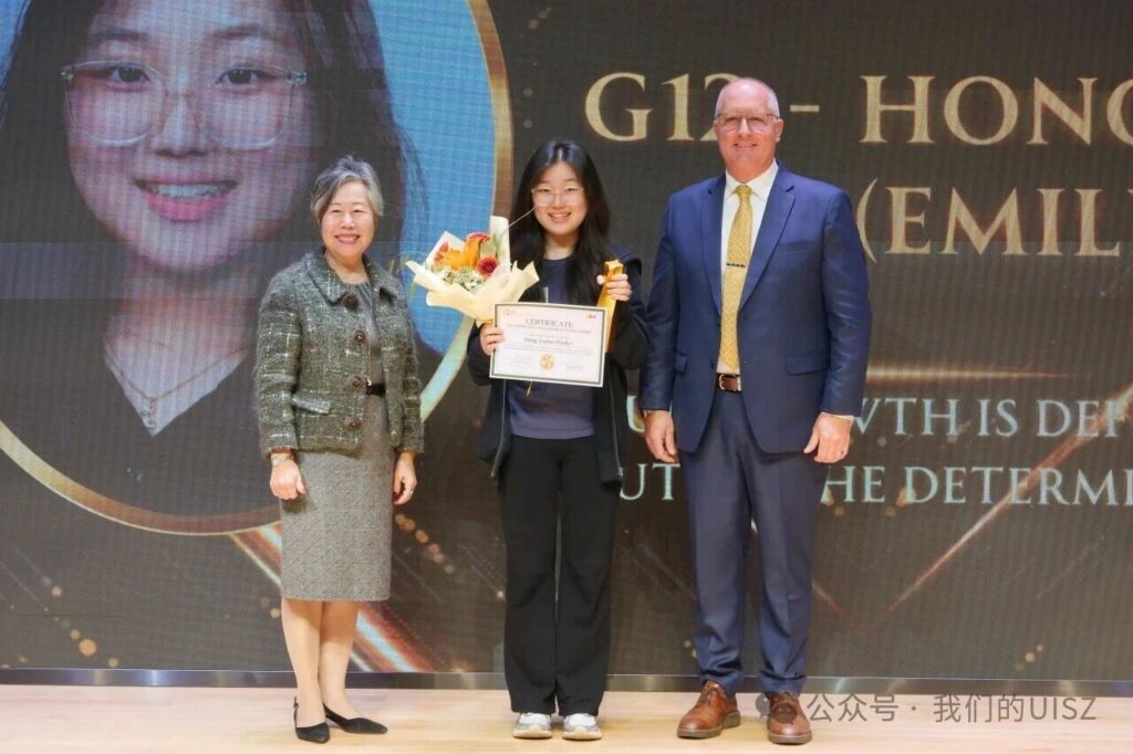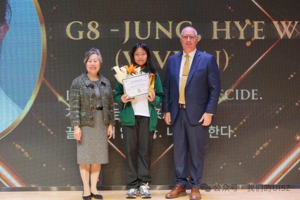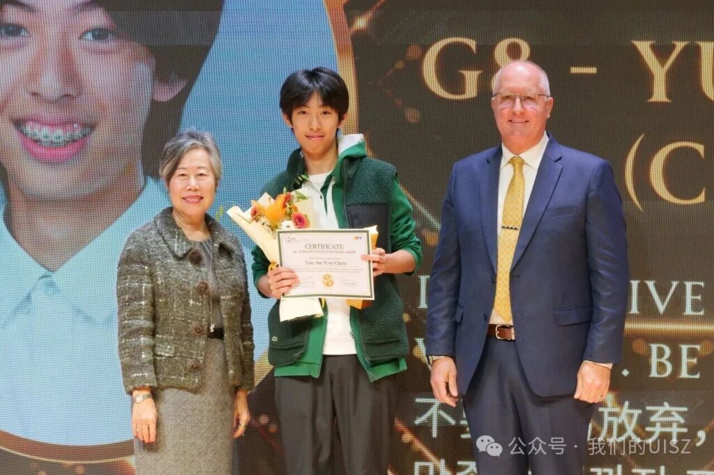 本周三的集会中有一个特别环节,旨在表彰我们的奖学金获得者。获奖学生的家人、IB 中学部的老师和同学们都出席了,共同见证这些学生的荣耀时刻。