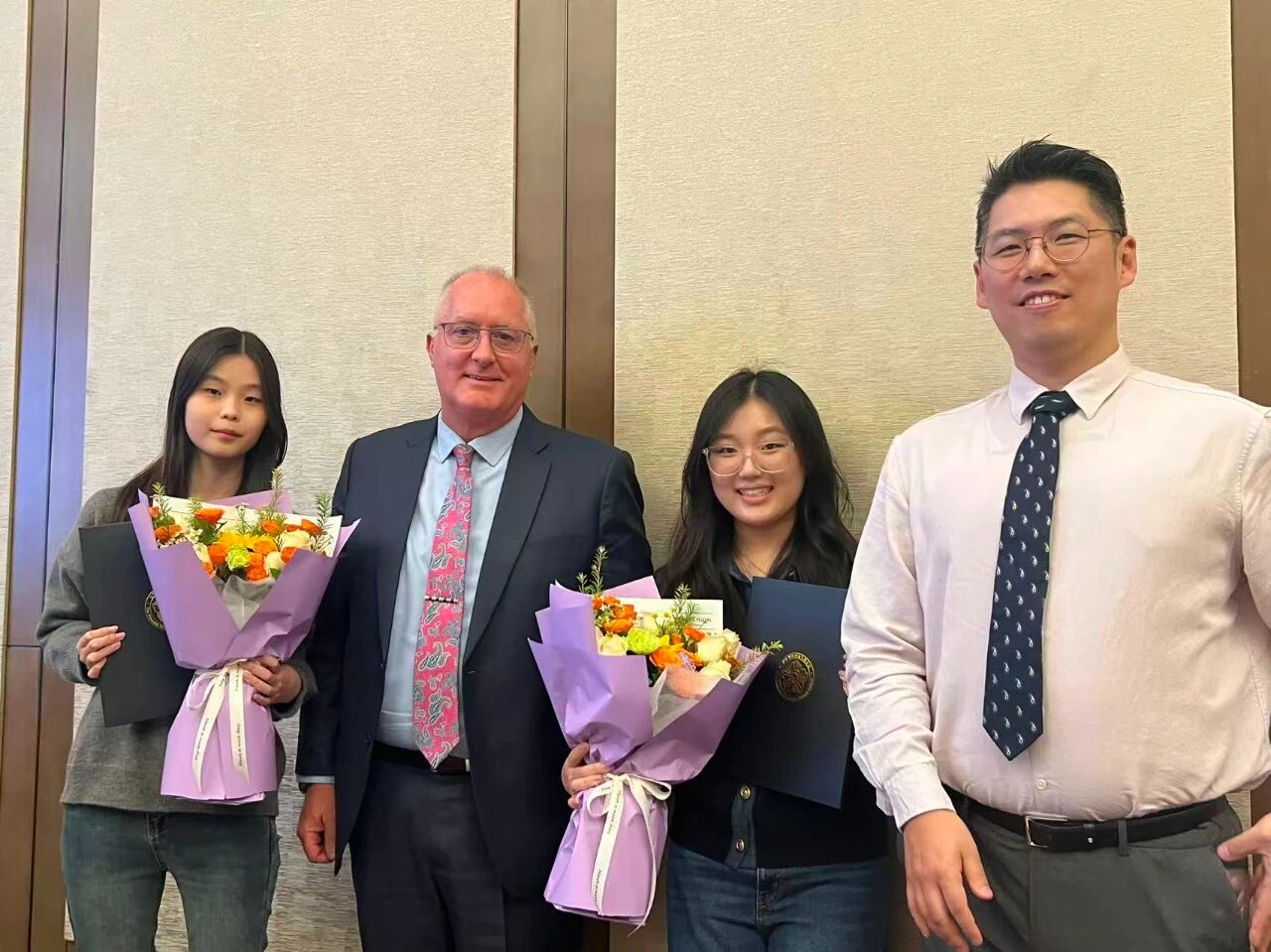 The ceremony, graced by the Consul General of Korea, was organized by the Dongguan Korean Chamber of Commerce. EunSu and JiMin entered the event under the escort of our Head of School, Dr. Daniel Mullen. Their Korean mother tongue teacher, DaeWoo Lee, also joined to celebrate this significant achievement.