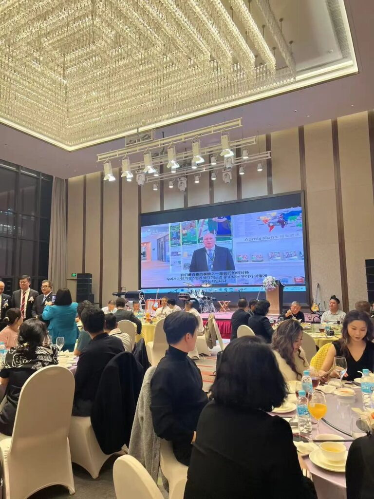 典礼由东莞韩国商会主办,韩国总领事亲临现场。EunSu与JiMin在我校总校长Daniel Mullen博士的陪同下步入会场,她们的韩语母语教师李大雨亦到场共襄这一荣耀时刻。